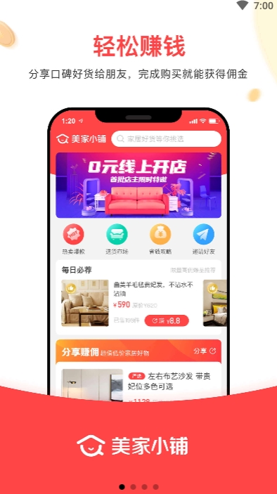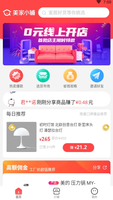美家小铺为您提供海量严选家居、家装商品,开通美家小铺成为店主, 不用囤货,不用承担发货与售后,一键分享商品给好友,轻松带货。