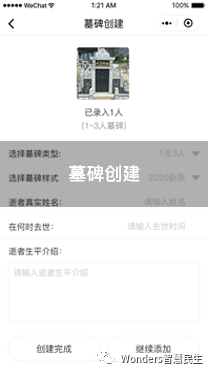 4、然后底部还可以创建祭扫墓碑,完善墓碑信息即可