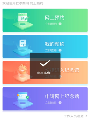 第七步:预约成功后,在预约时间前往园区,打开小程序点击“我的预约”向工作人员出示二维码,经核实后方可入园祭扫。