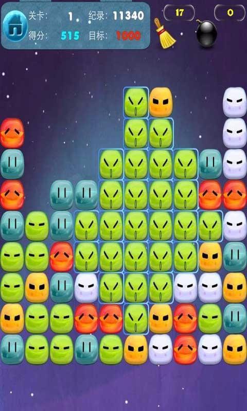 1.点击滑动,三个及三个以上的同形状的物体可以被消除