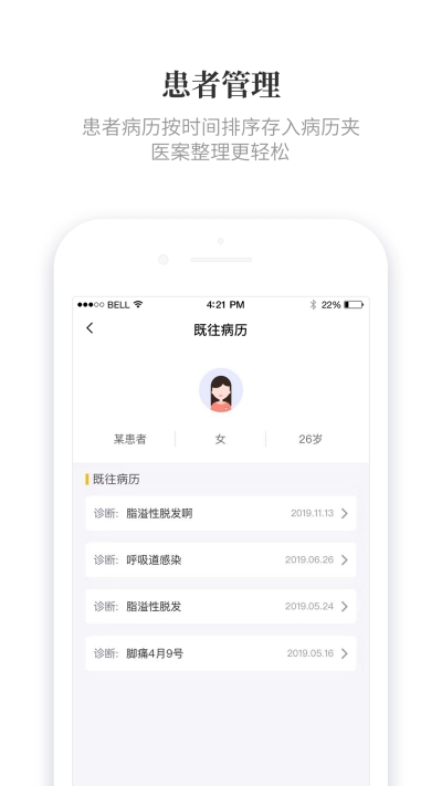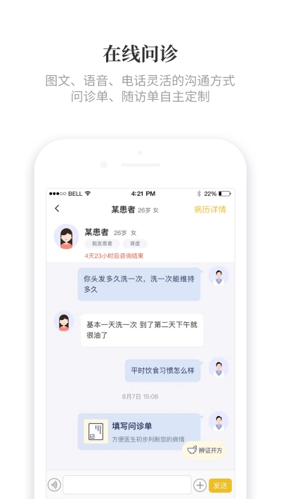- 高效管理患者:定制发送问诊单,定期随访诊疗效果