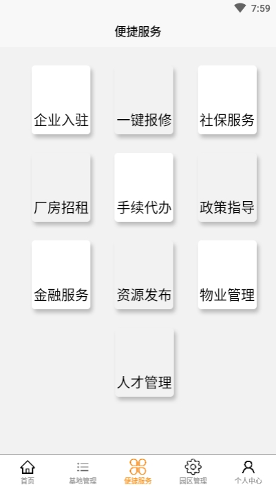 还包括了企业入驻,一件保修,开通社保服务,对于园区中的厂房的售卖,以及招租,各种手续的代办服务。