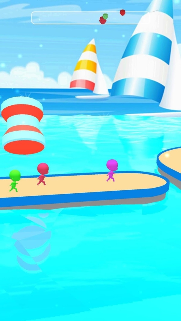 1、简约的3D图形打造各种多彩的火柴人形象,各种经典的水上赛道关卡展现。