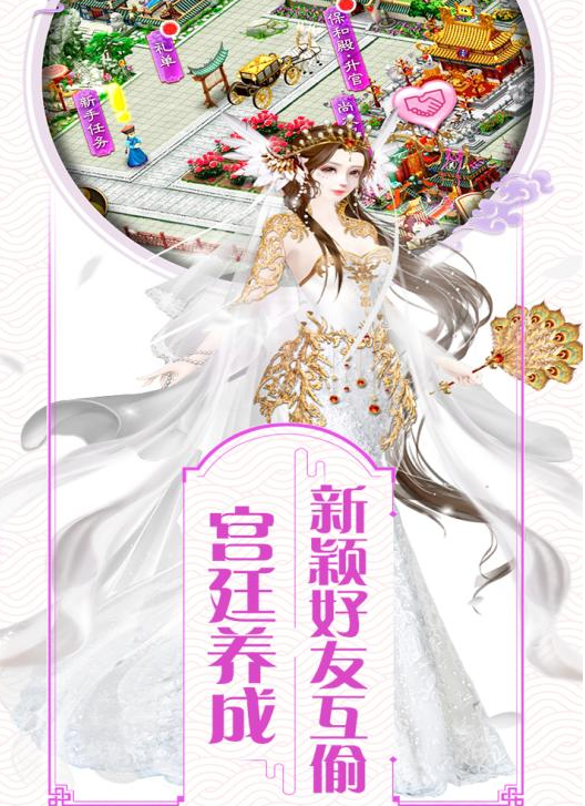 游戏再现了清代宫廷古色古香的场景画面,玩家置身与楼阁亭榭,红墙绿瓦之中,仿佛经历一场神奇的穿越之旅,打造绝不一样的人生奇遇。