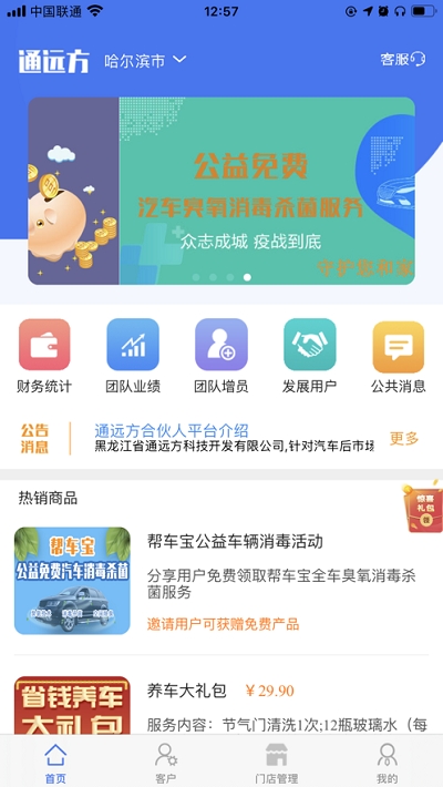 通远方app是全新的汽车服务类手机软件,在这里你可以看到公共信息各类更新,个人消息迅速推送,在线查看各项数据详细显示,提供线上培训服务,,用户可以线上提供汽车服务,财务统计,团队业绩,团队增员,发展用户,公共消息,客户滚利,门店管理等,需要的可以下载通远方app使用!