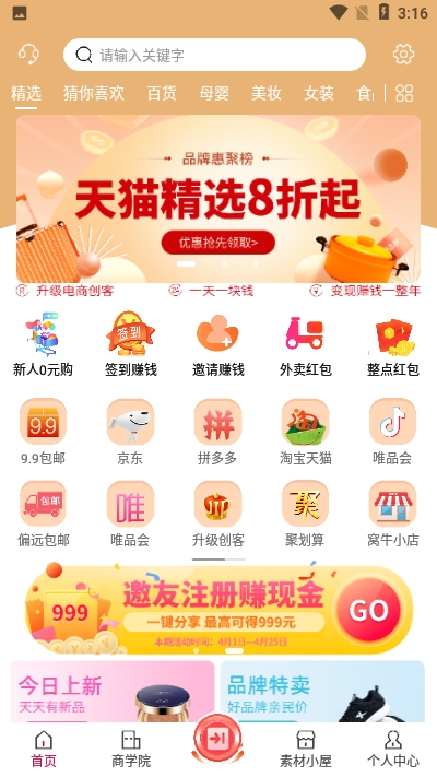 全新电商平台更轻松,喜欢网购的同时省钱又赚钱,邀请好友还能获得更多的奖励。