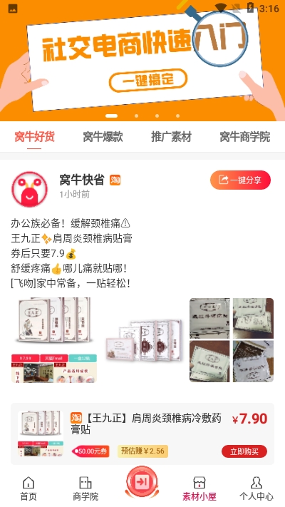 窝牛快省是一款可以获取各大电商平台优惠信息的电商购物平台,每日人工精选优质商品推荐,超性价比好物供你选择,极限返佣95%,省时、省心、还省金,成为真正省钱居家能手,接下来游戏爱好者小编就给大家带来这款软件的具体介绍,感兴趣的小伙伴们速来游戏爱好者看看吧~~