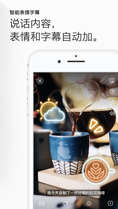 说话就自动拍,不说话就不拍,还有自动的字幕和表情。