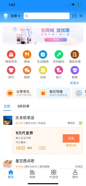 3.同城的优惠券每天你都可以领取到,而且使用没有什么门槛的限制。