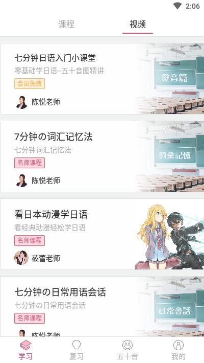 这里可以看动漫学日语,所有视频都是可以直接播放的,无需购买课程,趣味学习日语,从火影忍者,海贼王,柯南等热门日语动漫中学习日语,寓教于乐,加快学习效率