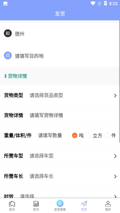 针对选定货源下单,输入车牌号和电话后,完成订单支付。