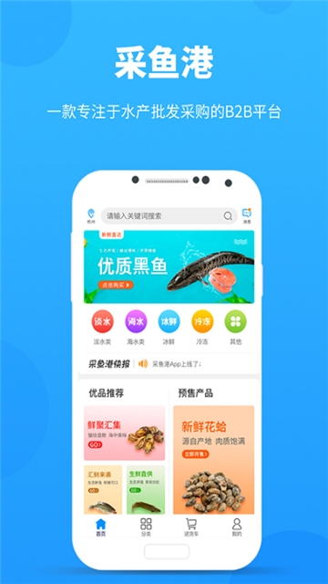 采鱼港软件是一款水产类采购软件,这里拥有了海量生鲜水产商品,专注于水产行业中小买家、卖家降低流程成本,平台汇集海水、淡水、冰鲜、冷冻及水产周边产品,可以随时进行搜索,拥有的水产产品种类多,商品质量有保障,饮食更健康,价格更实惠,来游戏爱好者下载使用吧!