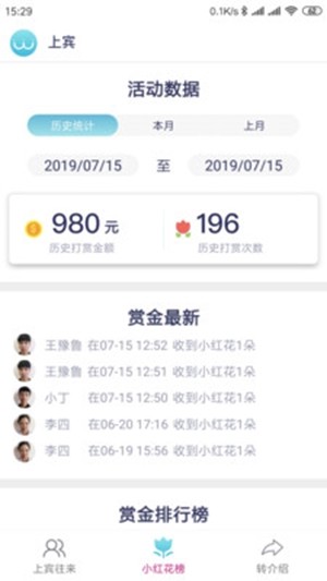可以实时查看上宾系统特有的门店服务实时反馈与打赏榜单;