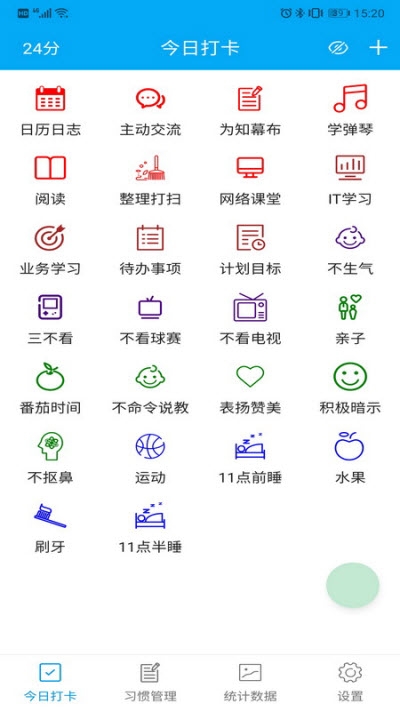 在今日打卡或者习惯管理页面,点击右上角“+”按钮,都会进入新增习惯页面