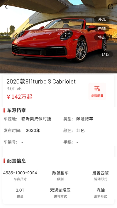 车辆信息记录清晰,配置信息一目了然,帮助用户选择好车;
