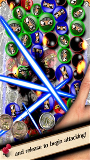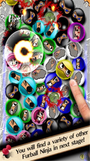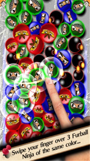 打倒方式,只要手指划过同样颜色的毛球忍者然后放开!