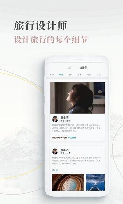 旅行设计师为每一次出行,提供不一样的跨界主题融合,让旅行的边界变得无限,让旅行的体验获得N次方,并通过旅行设计,带领旅行者“向内行走”。