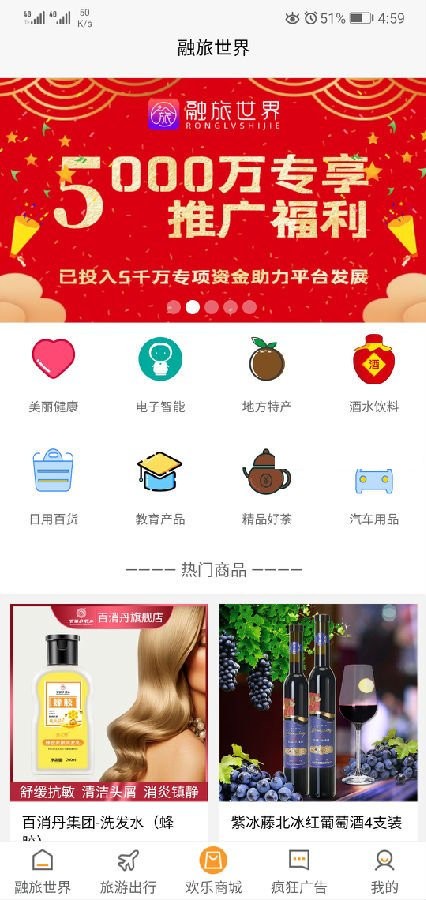 《融旅世界》一款可以在线提供给用户利用休闲时间完成推广任务获取汇报的赚钱软件APP,在融旅世界软件中项目多,各种产品都有,用户可以任意选择推广,并且自己在软件中购买产品还能获得贡献值哦!