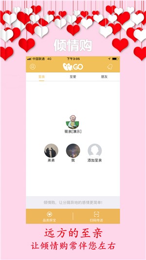 倾情购是一款非常好用的生鲜水果软件,它能够让用户随时随地可以购买,这款app最主要的功能是可以让处在异地的亲人朋友也顺带捎上自己的一份心意,让感情升温,感兴趣小伙伴千万不要错过了,现在就点击下载吧!