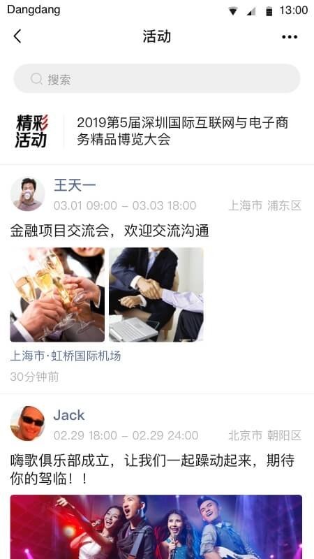 活动:提供活动发布、报名及管理等服务,便捷发布会展、会议、户外、聚会交友等活动。
