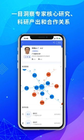 查看专家详情(专家印象、科研产出和合作关系图谱等)。