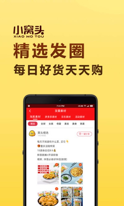 工作低,但是还想购物,小窝头app帮助你解决资金问题,这是帮助你省钱的购物平台,每天都会有好物推送,优惠卷等你来享,在实体店遇到喜欢的商品但是价格贵了,可以拍照搜索相对应的优惠卷,而且还有返利福利,并且支持一键图文链家转发!