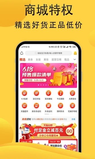 花捕手app是一个优秀的网购软件。集合了全网性价比最高的商品,全人工筛选,每天几百款九块九包邮、及九块邮特价商品,花捕手app提供网络热门产品排行榜,海量优惠券等你来领,购物既方便还省钱,优惠到你想不到。