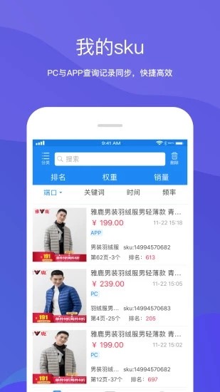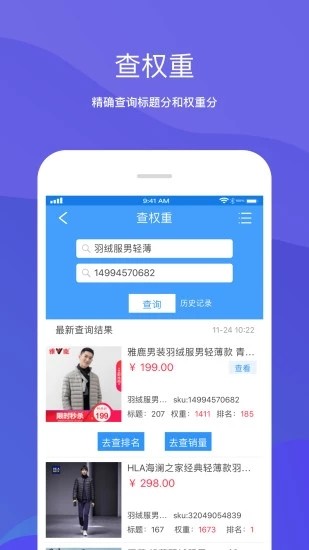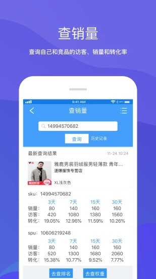 该产品专注商品查排名、查权重、查销量等,它是一款专为卖家打造的电商数据查询分析工具,基于搜索引擎机制及业务逻辑算法,帮助商家精准定位实时排名及权重变势,监控分析竞品的专业数据应用工具平台