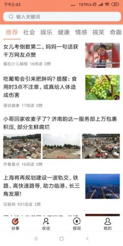 新用户登录就送随机现金红包,转发文章单价0.08元/阅读,平台文章内容绿色、老少皆宜,更加适合转发,长期稳定,拒绝低俗广告!