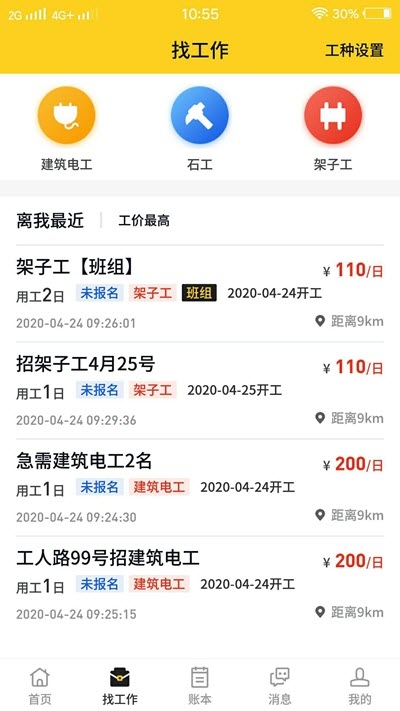 易点天工是一款为建筑行业工人提供找工、上工、工资管理服务的APP。