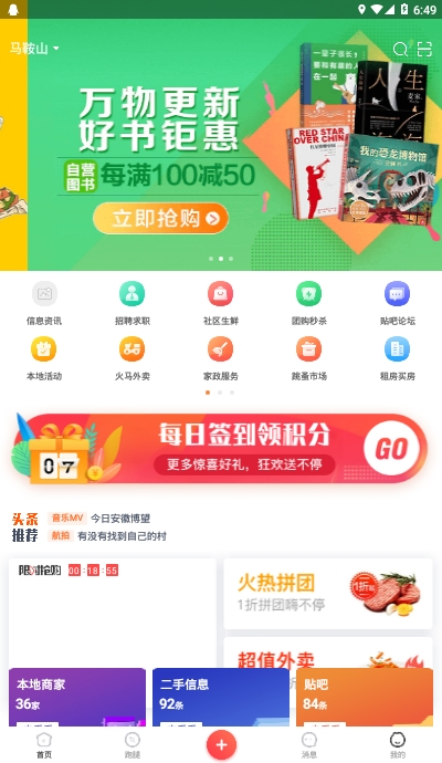 火马门户app是一款本地生活资讯软件,线上线下结合,同城附近的促销活动、便宜好货、新品上架、优选推荐等信息抢先知道,这款软件提供了本地吃喝玩乐一条龙的服务,你可以通过软件获取本地最新的资讯和各种商家的活动信息。平台支持社区、二手交易、生活资讯、团购等功能,可以满足本地居民的所有需求。