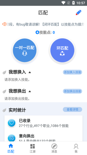 这款应用能够实时统计技能交换的数据,意向换出和意向换入的技能数目可以非常清楚;