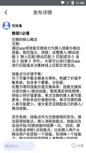 发布技能交换需求,这里有着文字编辑的功能可以让用户自主的发布技能交换的需求动态;