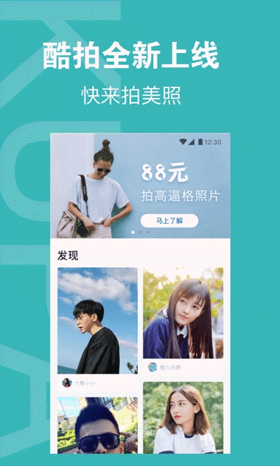 酷拍达人是非常好用的一款多功能摄影软件,天提供大量的明星的搭配技巧,让你成为行走的时尚衣架哦,这里入驻了诸多专业的摄影师,还有诸多性质有颜值的模特,拥有丰富的场景可以选择,为大家拍摄各种美丽的照片,需要的朋友欢迎下载使用吧。