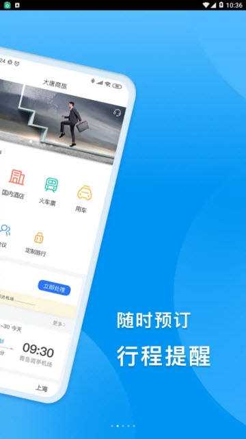 “订单“随时查看订单状态;“行程”自动管理差旅行程,App首页直接显示每日提醒,出行更智能、省心、省事!