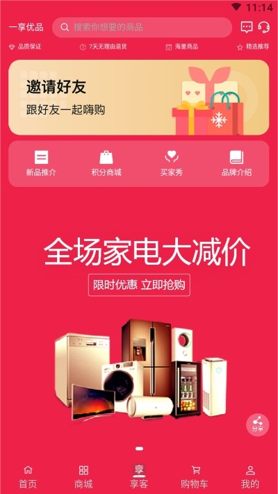 一享优品APP主营家用日化、护肤美妆类产品,“享客”功能可以自推或将产品转发并分享给微信朋友,通过链接购买商品来获得佣金,是一款拥有海量品质商品的购物平台,快来试试吧!