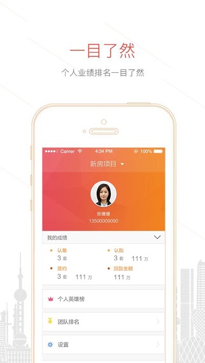 M2案场管理APP为房地产经纪人提供客户管理功能,同时实时统计分析营销数据,上传审批流程和跟进记录,让项目信息时刻掌握,加强房地产营销团队内部交流,办公更高效,提高业绩,而且能看到所有人的个人业绩排名。