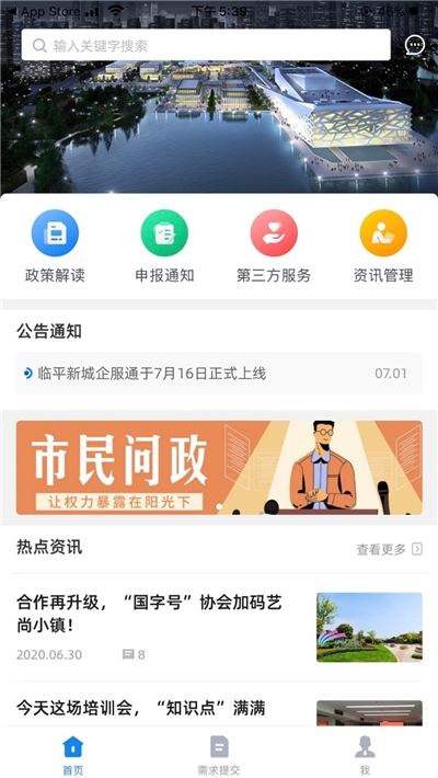 新城企服通APP为位于商务中心临平新城的企业服务,使用时企业可以根据企业性质定制服务,软件会推送相关资讯,进行相关政策的专业解读,线上申报能够实时更新通知,方便企业充分了解最新政策,并将政策落实。