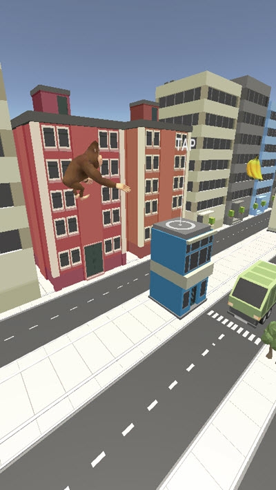 在3D模型的城市中,你将扮演一只暴走的大猩猩,你疯狂的向前奔跑!