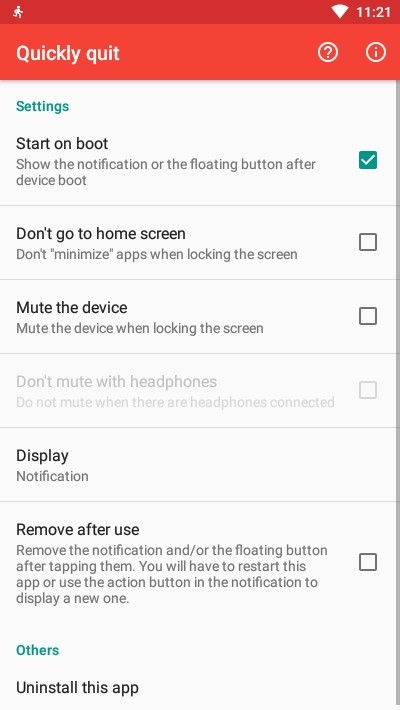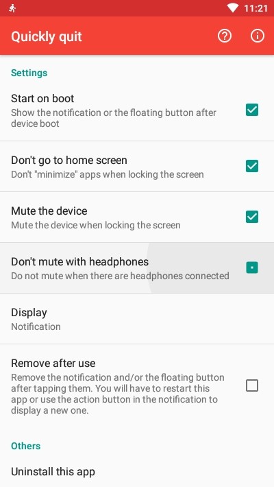 软件非常小巧,安装上之后,可以利用悬浮窗进行控制,或者长按照相键、搜索键快速退出。不出2秒,就可以将设备进行静音,对屏幕进行锁定。上课开会偷玩手机,或者面对女友,都可以从容应对。