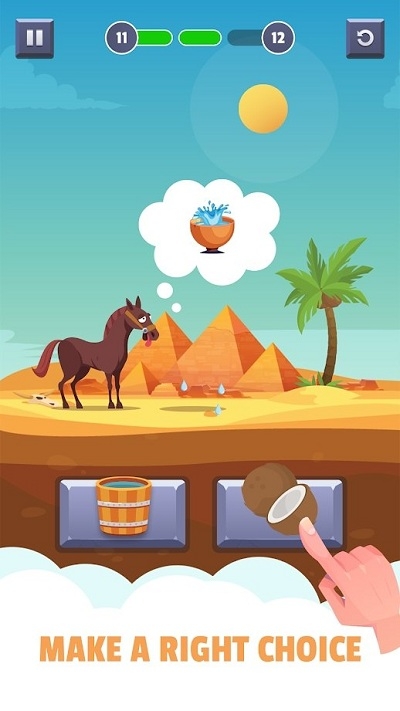 主要模式:一个迷你选择问题游戏,其中包含一些诱饵问题,这些挑战挑战了您的思维和运气。选择这个或那个,将会有后果。您可以通过所有级别而无需再玩任何回合吗?