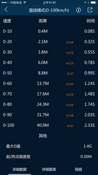 2.作为汽车性能的传统测试项目,车涯APP结合pgear可以精准测试各种项目的测速。