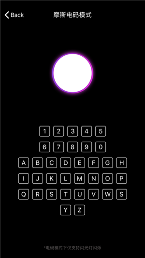软件可以提供节奏模式、电码模式和手动模式,您可以选择手动按压开启闪光灯,依照点击的节奏进行闪烁,也能输入摩斯电码,按照规律开始闪烁。独特的闪烁方式,简单的操作方法,一览无余的界面,让您感受别样的闪光灯体验。