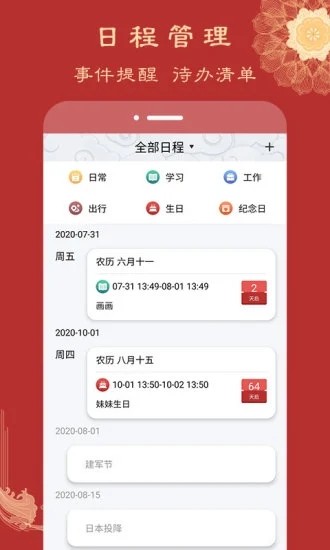3、更多实用功能,风云万年历app将时间与事件结合,高效生活!