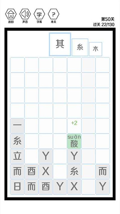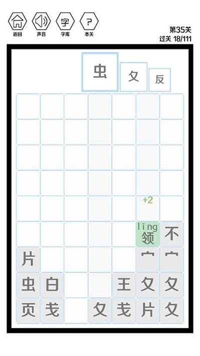 游戏画面很简洁每个字很整洁,在闯关的同时要进行新的冒险和体验!各种各样的关卡等待玩家的挑战。学习各种形式的字,将学习与游戏相结合,效果也是非常好的。每个级别都有不同的关卡和难度,使用您的智力来解决难题并解锁关卡!