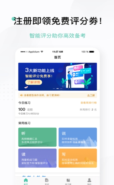 海量题库+精选练习册+机器智能评分+AI提分推荐+练习排行+学习社群+分享互动于一体;