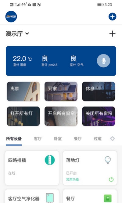您可以在床上就能开关智能窗帘;设置好空调的温度和运行模式;根据家庭的空气情况,自动开启空气净化器,在您不在家的时候也可以远程进行控制家里的智能设备。