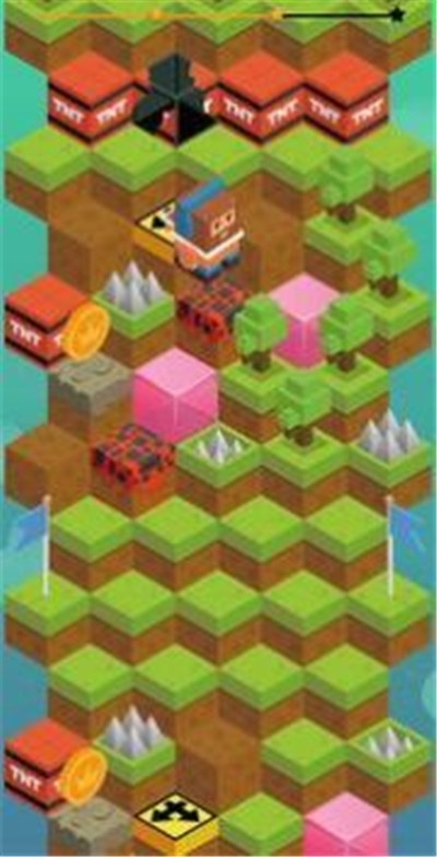 想要躲避危险,从弯道能够快速通过,这样少了些直接向下跳跃的隐约危险;游戏中可以通过闯关解锁更多的人物角色;游戏界面是经典的方块类型,实际上跳跃的路线是倾斜的,这样可以看清前进路线。
