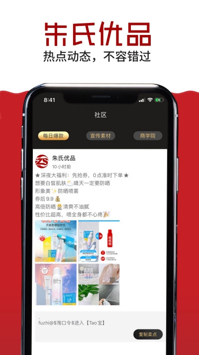 朱氏优品是一款优秀的网购软件,承包完成店铺负责销售,可以满足大家日常生活所需,海量优惠券发放,领到手软,大牌限时秒杀价,买到就是赚到,每天定时推送优质新品,让用户每天都有新选择,有需要的朋友快来下载吧!