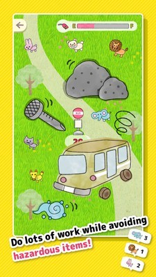 2、在“巴士”阶段,开车带您的动物朋友在您的巴士上接他们,然后将他们放在屏幕中间的巴士站下车。开车去公交车站,他们会下车。